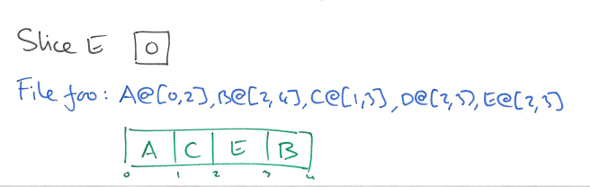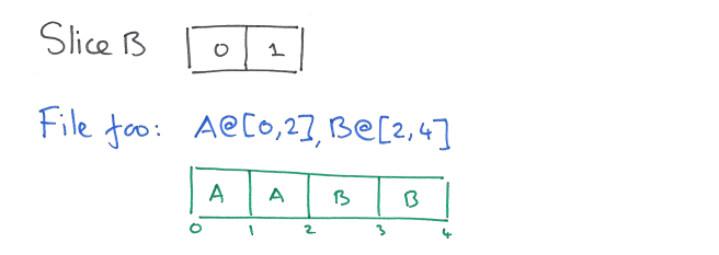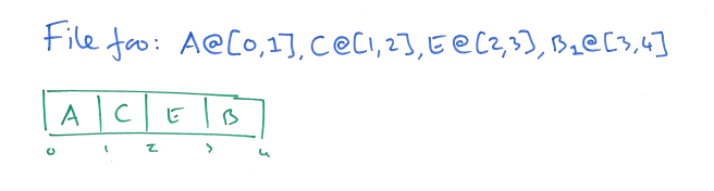 A worked example should help to make this clear. Let’s consider the history of a file foo, which we happen to write/update in 1MB chunks. The first write creates a 2MB slice, ‘A’.