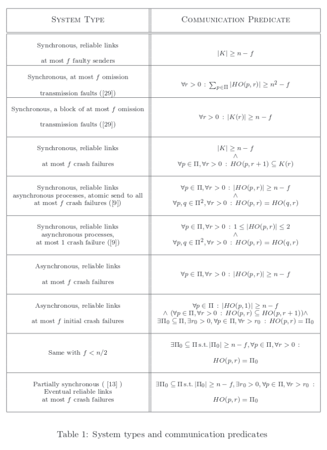 We briefly touched on the Heard-Of model last week when we looked at PSync. It’s really very elegant, so today I thought it would be good to take a closer look. The traditional view of fault-tolerant distributed systems makes the following two assumptions: