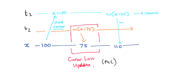 In a locking implementation, over above the requirements to prevent P0 and P1, holding a lock on the current item of the cursor until the cursor moves or is closed will prevent Cursor Lost Updates.