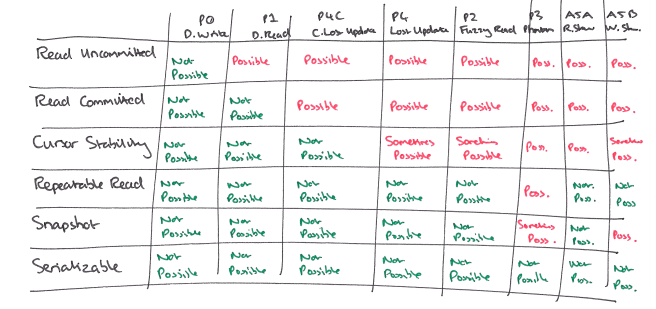 We can characterise isolation levels by the phenomena they allow (prevent):