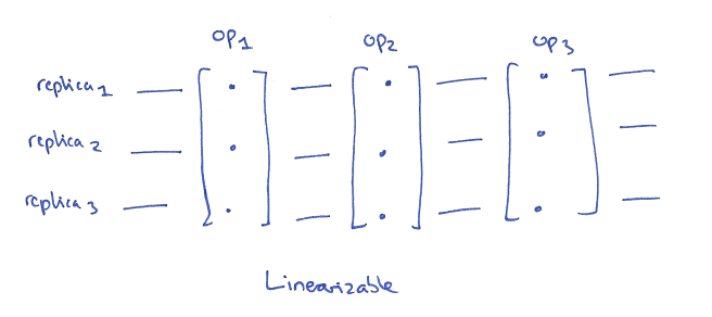 Linearizability doesn’t just apply in a distributed context, although that’s what I’m focusing on here. We can also talk about linearizability of operations in a multi-processor system for example.