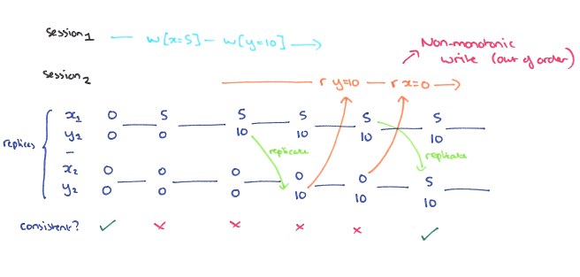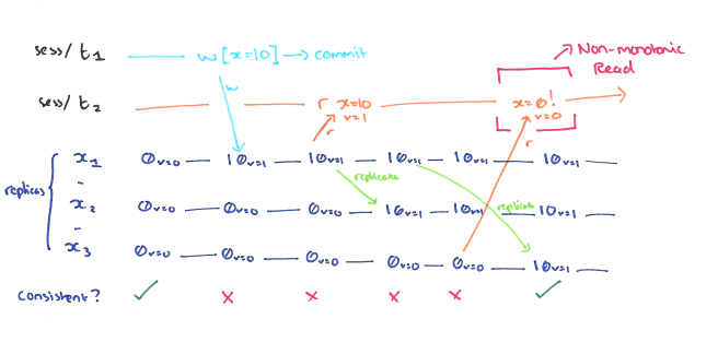 Since we’ve spent the last couple of days sketching anomaly diagrams and looking at isolation levels, I wanted to finish the week off with a quick recap of session anomalies and consistency levels for distributed stores. In terms of papers, I’ve drawn primary material for this from: