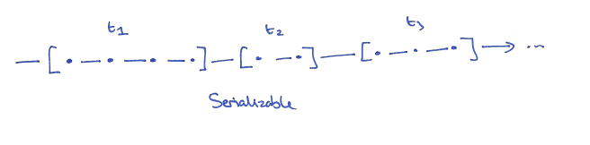 Strict serializability btw. is serializability & linearizability combined – the transactions are ordered according to real time. It’s what you’d get if your database had only a single thread and processed transactions one-at-a-time in order of submission on that thread.