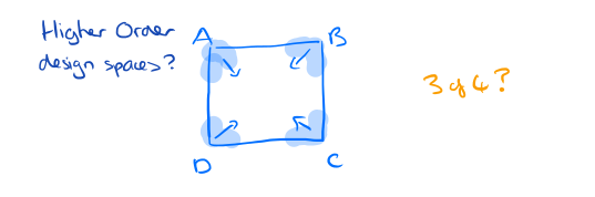 But I don’t know of an example of a higher-order trade-off. I see no theoretical reason why they shouldn’t exist – I just can’t cite one. Consider four dimensions, the formulation A,B,C,D -pick 3. (And it would have to be the case that if you take any 3 of them you don’t have to trade-off between them).