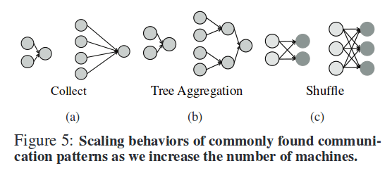 (a) the all-to-one or collect pattern in which data from all partitions is sent to one machine