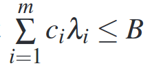 To account for the cost of an experiment we can augment the optimization problem we setup above with an additional constraint that the total cost should be less than some budget. That is, if we have a cost function which gives us a cost ci for an experiment with scale si and mi machines, we add a constraint to our solver that