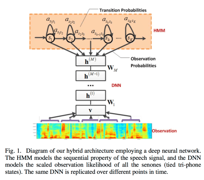 The title may be a bit of a mouthful, but this paper is often cited as a watershed moment for deep learning and speech recognition. It represents the first application of deep neural networks for large vocabulary speech recognition (LVSR), and the resulting system significantly outperformed the previous state of the art. It uses several of the ideas we saw yesterday including the use of unsupervised pre-training followed by supervised learning, and hierarchies of abstractions.