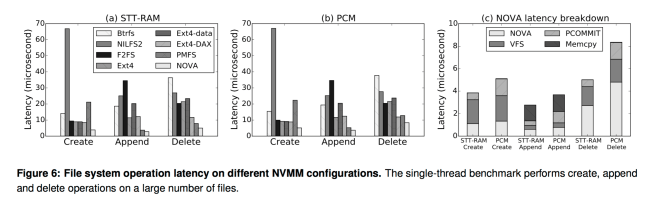 Figure 6 shows how NOVA file system operation latency compares to other file system across different NVMM configurations.