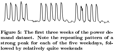 Tarzan was also tested on a real world power demand dataset for a Dutch research facility. The reference pattern shows strong peaks for weekdays, followed by relatively quiet weekends: