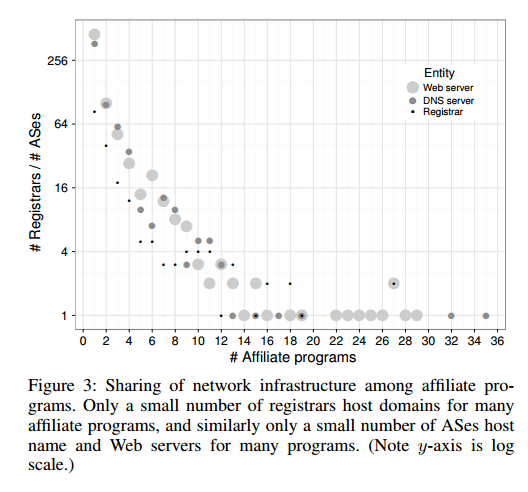 To find possible bottlenecks or weaknesses in the spam value chain, the team looked at the extent to which affiliate programs share infrastructure.