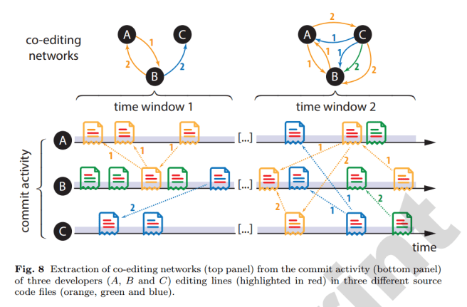 We particularly consider the time-stamps of commit actions, as well as the detailed code changes within all of the committed files in order to build directed and weighted networks which capture the time-ordered co-editing of source code regions by different developers. We call the resulting network topologies time-ordered co-editing networks and throughout this article we will use them as a first-order approximation for the emerging coordination overhead.