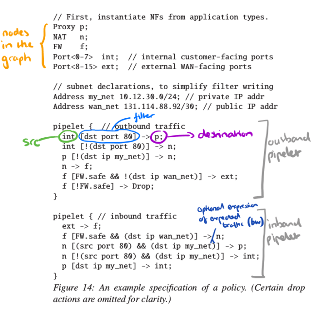 - Affinity constraints – for NFs that can be scaled, how should traffic be split across NF instances? (E.g. by port, or by flow).