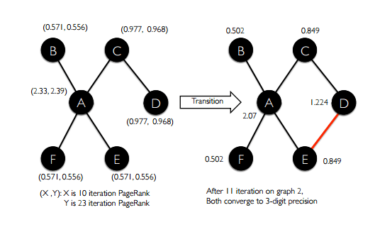 Some classes of graph algorithms can cope with the graph being modified while the algorithm is still converging. For example, if a graph changes during an evaluation of PageRank you’ll still get an answer, which studies have shown will be within a reasonable error to the actual answer you’d get if you started the algorithm again from scratch with the now current graph.