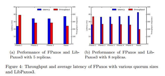 Such a change would be trivial to implement and by reducing the number of acceptors required to participate in replication, we can reduce latency and improve throughput. Furthermore, we have also improved the fault tolerance of the system. As with Paxos, if at most n/2 -1 failures occur then we are guaranteed to be able to make progress. However unlike with Paxos, if exactly n/2 acceptors fails and the leader is still up then we are able to continue to make progress and suffer no loss of availability.