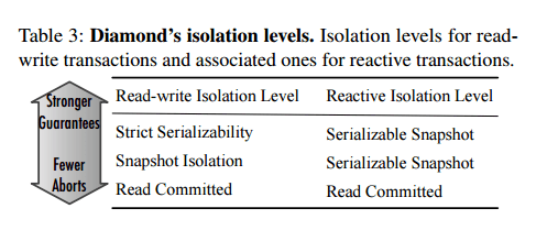 Diamond supports configurable isolation levels: