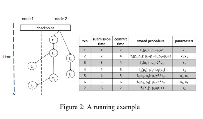 Here’s an example from the paper, showing a set of transactions distributed across two nodes.
