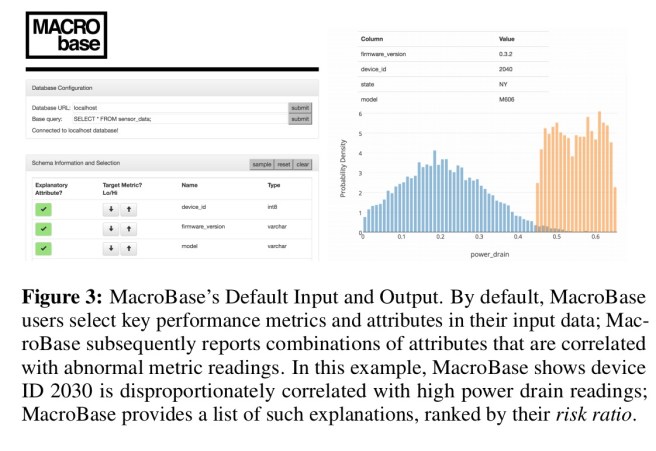 MacroBase supports fast iteration by allowing users to interact at three different levels. A point-and-click interface allows a user to specify a source from which to ingest data, identify the key attributes as above, and see explanations in the form of combinations of attributes correlated with abnormal metrics.