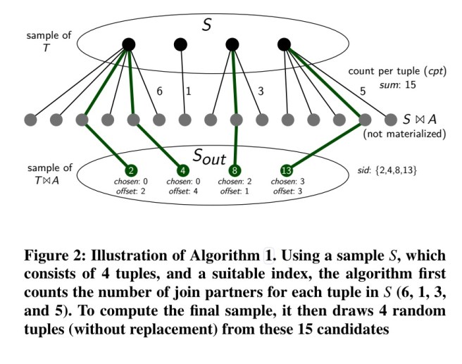 For in-memory databases, the first consideration largely goes away – we can sample reasonable numbers of tuples in a small amount of time (though presumably we always still have some kind of space budget we also have to adhere to). To address the second consideration it would be ideal if the samples we took were somehow more likely to ‘survive’ the joining process, so that a sufficient number of tuples flow through to the next join…