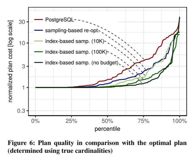 Using PostgreSQL’s estimates, only around one quarter of the plans are close to the optimum, 42% of the plans are off by a factor of 2 or more, and 12% are off by a factor of 10 or more…