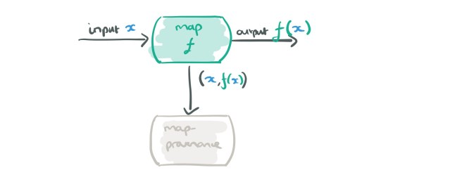 Consider for a moment just the map and reduce operators, and records flowing in a dataflow graph that are (key, payload) pairs (like a key-value pair, but the payload can also contain metadata). Let’s look at a map node in a dataflow graph, which applies some function f to its input data d, giving output f(d).