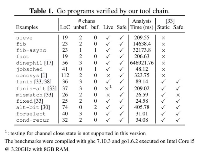 Type checking has come a long way… automated liveness and safety checking for all forms of concurrency in Go would be an incredibly useful tool, no doubt saving hours of frustration trying to diagnose and debug errant concurrent behaviours.