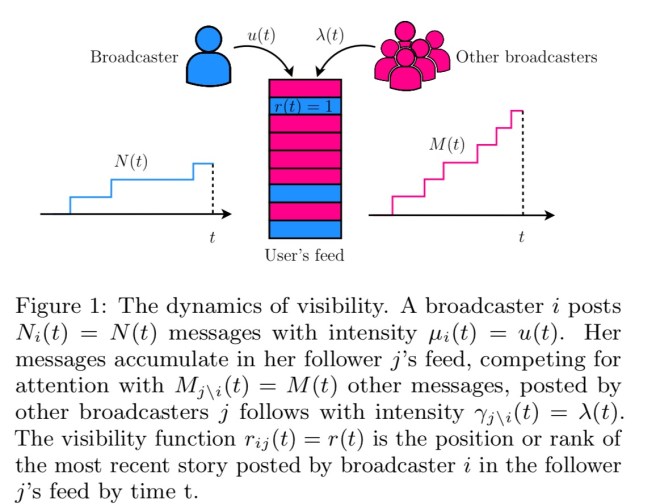The problem of being noticed is quickly translated into the proxy problem “how to stay at the top of followers’ feeds for as long as possible.”