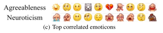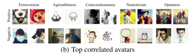 … there are some interesting findings in the usage of avatars and emoticons. For instance, introverts tend to cover their face or show side face. Users high in Openness are more likely to use avatars with their friends, while users low in Openness prefer avatars with themselves only.