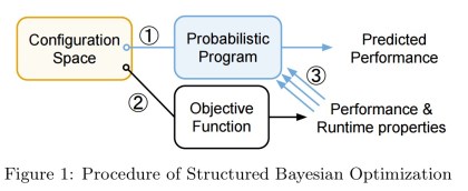 Structured Bayesian optimization (SBO) extends the Bayesian optimization methodology to take advantage of the known structure of the objective function. It uses a structured probabilistic model, provided by the developer, instead of a simple Gaussian process. In BOAT, those models are implemented in our probabilistic programming library.