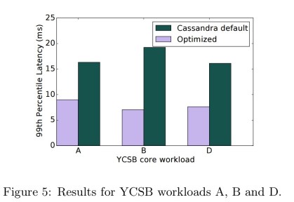 Our optimised configuration outperforms the Cassandra default configuration by up to 63%… Each optimization converges to within 10% of the best found performance by the second iteration.
