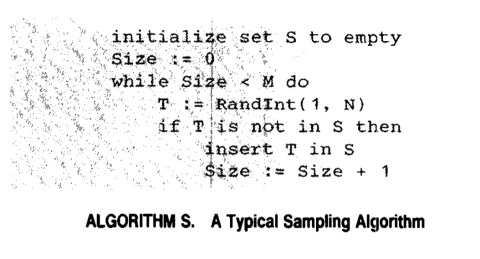 The sampling algorithm from the 1984 column, algorithm ‘S’, worked as follows: