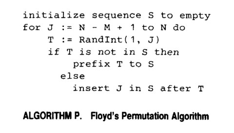 For the final piece of the puzzle therefore, Floyd gives us ‘Algorithm P’, a way of generating a random permutation.