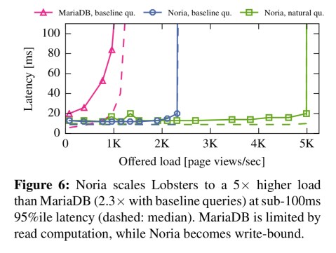 Here’s how Noria compares to MariaDB on Lobsters, where “Noria achieves both good performance and natural, robust queries.”