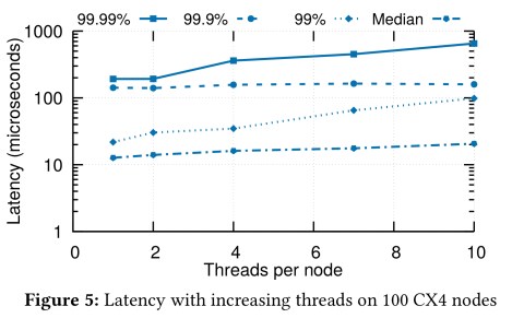 eRPC (efficient RPC) is a new general-purpose remote procedure call (RPC) library that offers performance comparable to specialized systems, while running on commodity CPUs in traditional datacenter networks based on either lossy Ethernet or lossless fabrics… We port a production grade implementation of Raft state machine replication to eRPC without modifying the core Raft source code. We achieve 5.5 µs of replication latency on lossy Ethernet, which is faster than or comparable to specialized replication systems that use programmable switches, FPGAs, or RDMA.