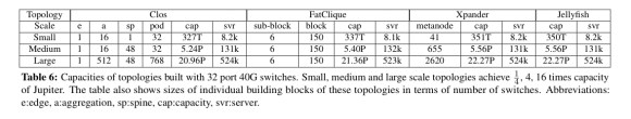 Here’s how Clos and Expander (Jellyfish) representative topologies for the same number of servers stack up against these metrics: