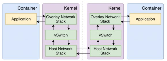 The overheads in overlay networking come from the per-packet processing inside the OS kernel: delivering a packet on the overlay network requires one extra traversal of the network stack and also packet encapsulation and decapsulation.