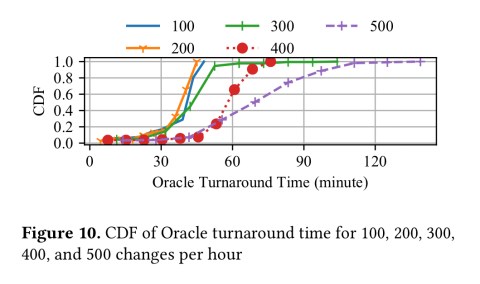 With n changes per hour, and n worker nodes available, SubmitQueue can achieve a turnaround time with 1.2x of the Oracle.