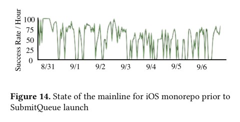 (Since the introduction of SubmitQueue over a year ago, mainlines have remained green at all times).