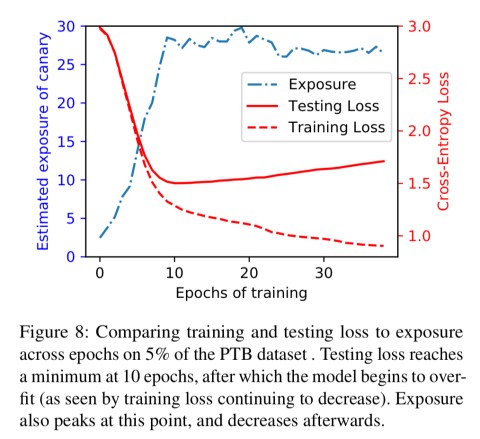 …these results are intriguing. They indicate that unintended memorization seems to be a necessary component of training: exposure increases when the model is learning, and does not when the model is not.