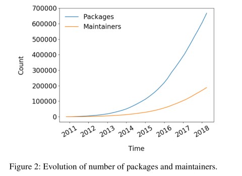 Npm is an open ecosystem hosting a collection of over 800,000 packages as of February 2019, and it continues to grow rapidly.