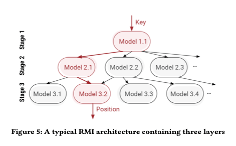 All of this depends of course on being able to train a sufficiently accurate model that can make sufficiently fast predictions, so that the total runtime for Learned Sort, including the training time still beats Radix Sort. For this, the authors use the Recursive Model Index (RMI) architecture as first introduced in ‘The case for learned index structures‘. In brief, RMI uses layers of simple linear models arranged in a hierarchy a bit like a mixture of experts.